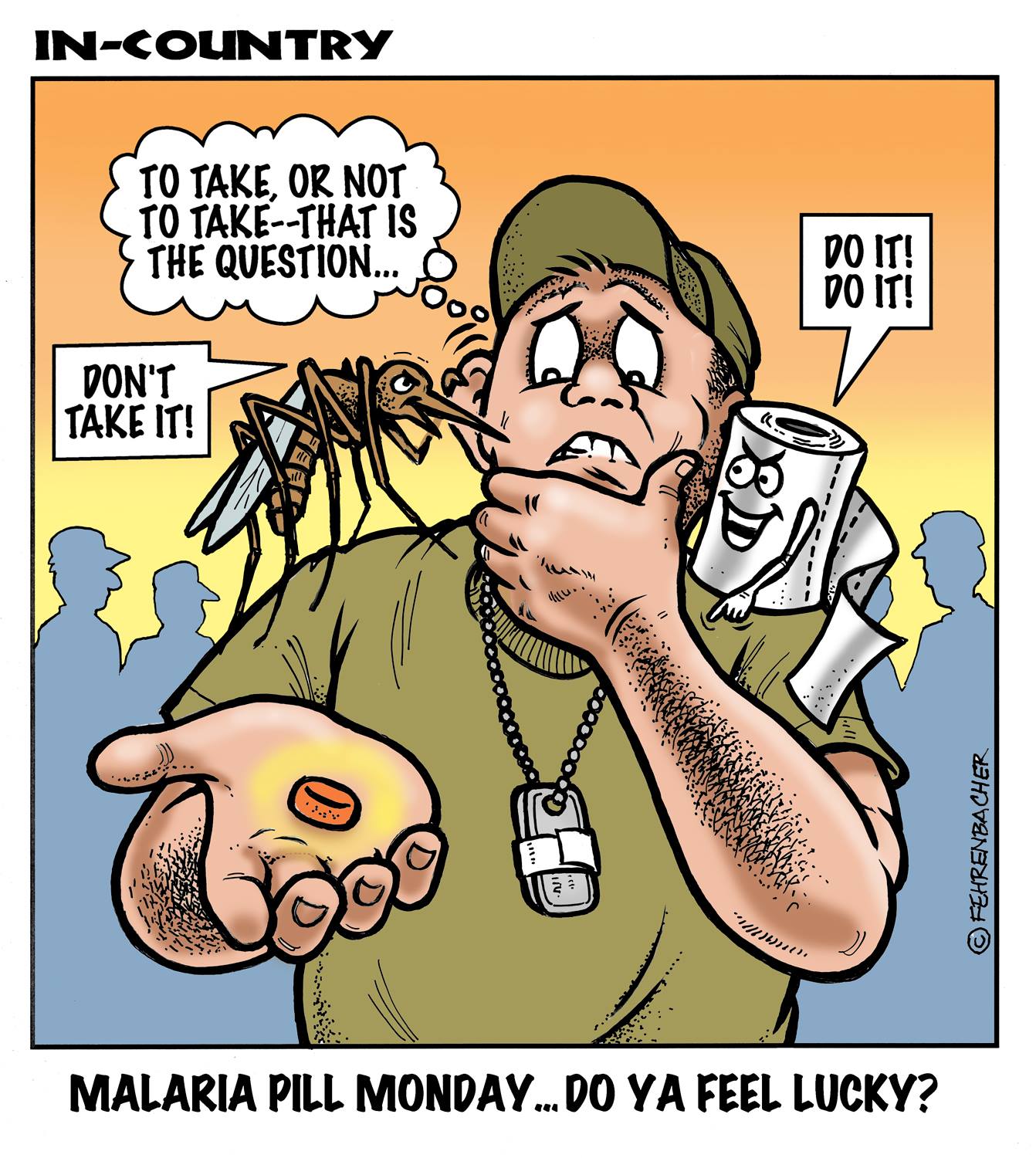 Phil enlisted in the Army in 1965 where you served for years in Vietnam. He became a graphic designer and has worked for the state of Oregon for 26 years. He retired in 2003 and started the Cartoon "In-Country". The cartoons reflect his experiences during his tour of duty in South Vietnam.